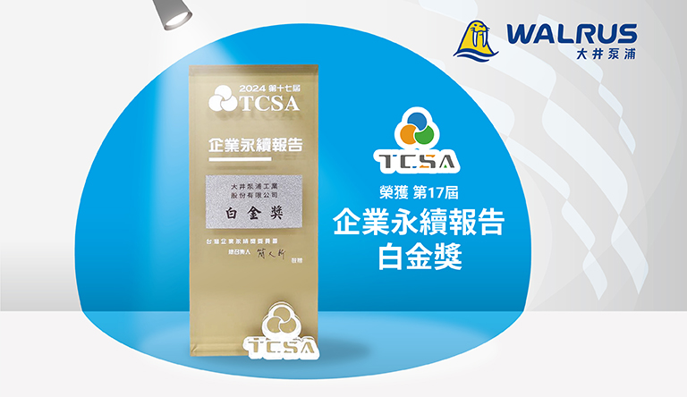WALRUSPUMP has won the Platinum Award at the 17th Taiwan Corporate Sustainability Awards(TCSA).